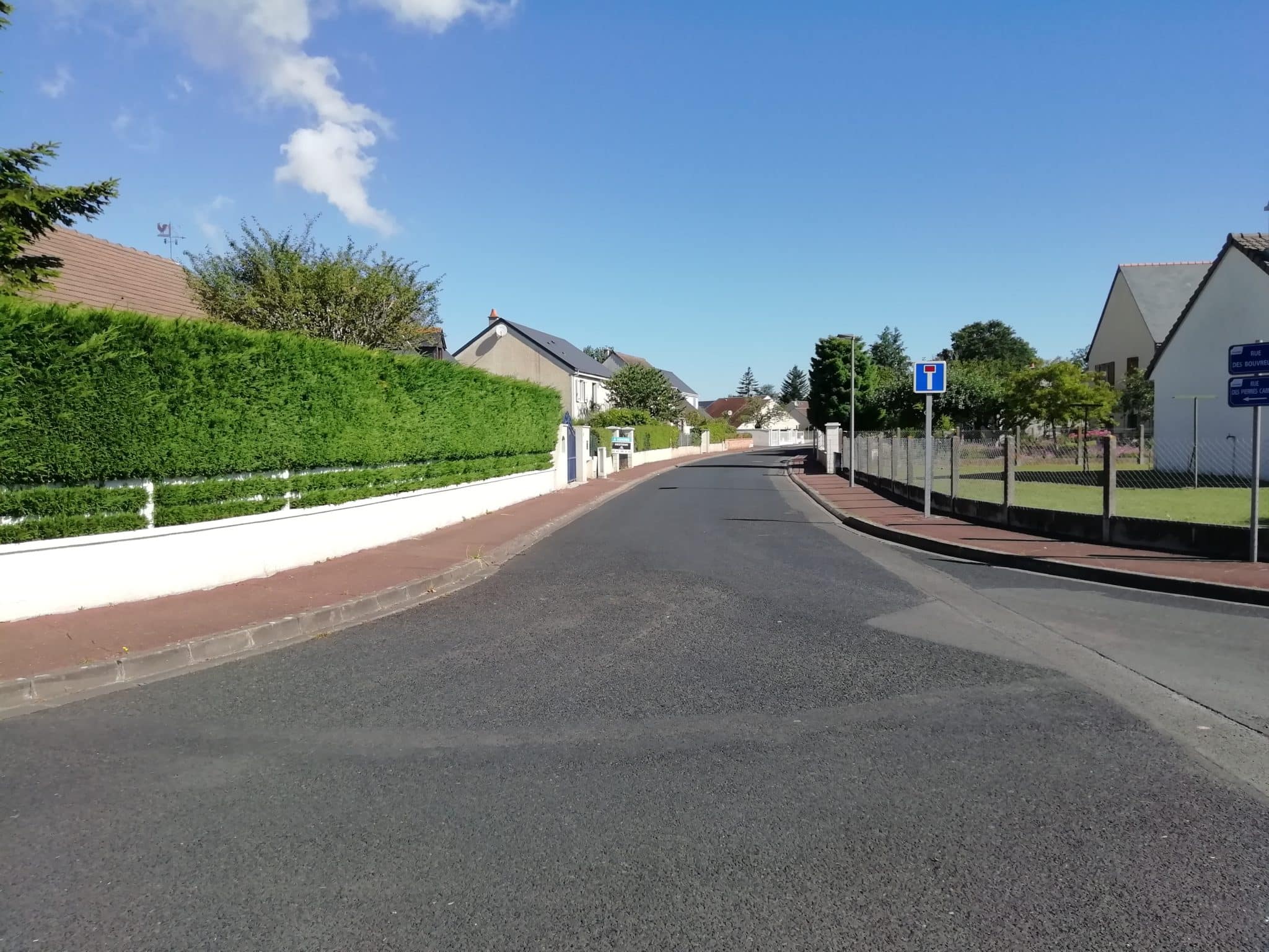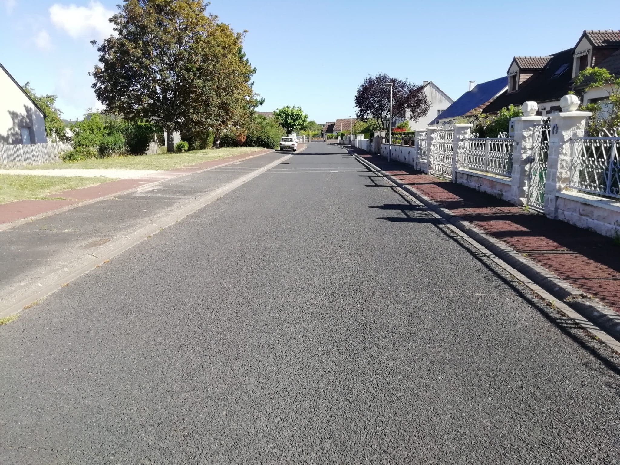- Chaussée réduite en largeur afin de limiter l’imperméabilisation des sols et de manière à favoriser l’infiltration des eaux de pluie.