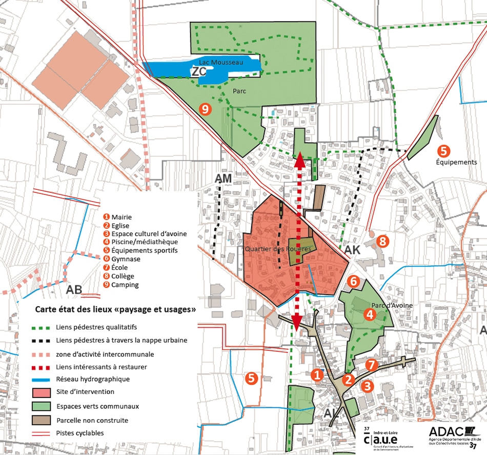 En 2017, la commune d’Avoine sollicitait l’ADAC 37 | CAUE 37 pour mener un état des lieux et une réflexion d’ensemble sur la requalification et l’intégration paysagère de la place des Chardonnerets située dans le quartier des Rouères.