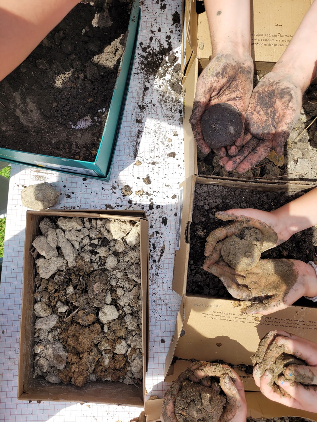 L’après-midi, l’ADAC|CAUE 37 a accueilli la classe de CM1/CM2 du groupe scolaire Jean Moulin de Chambourg-sur-Indre et sa professeure madame Borgniet. Au travers d’animations ludiques, Mathilde Fazakerley (concepteur-paysagiste) et Guillaume Gagnier (Urbaniste), ont pu expliquer de manière très concrète comment étaient formés les sols et leur rôle important pour le développement et le maintien de la vie sur terre. Après une légère hésitation à se « salir les mains », les enfants ont pu apprécier le contact de la terre. En effet, la connaissance des sols est aussi (et surtout) une question de sens (mobilisation d’au moins trois sens : le toucher, l’odorat, la vue et certains pédologues parlent même d’utiliser les cinq sens).